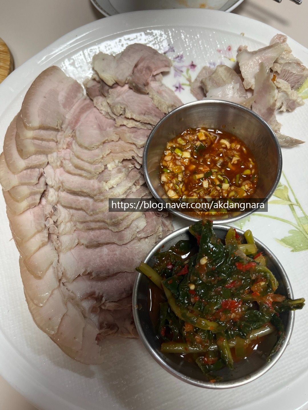 1. 고기가 잠길 정도의 물을 넣고 여기에 소금을 넣는다. 그 물이 끊으면 그때 앞다리살을 넣어 10분간 삶으면 됨