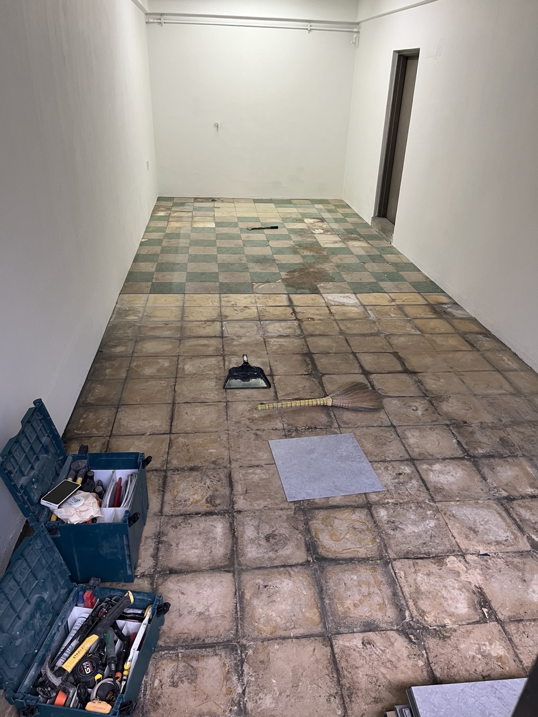 기존에 장판이 깔려 있어 아래 습기가 차있어서 오히려 데코타일이 쉽게 떨어져 반은 제거 후에 아래처럼 깨끗하게 제거해 주셨습니다. 아무래도 기존 꺼를 철거하면 비용이 너무 높아져서 기존꺼 위로 덧붙이는 걸로 했는데... 뭔가 맘이 편하지 않았는데 오히려 이렇게 반이 완전히 제거가 되니 뭔가 안심되는 느낌이었어요. 아침 7시부터 오셔서 작업을 하시는 엄청 부지런한 분이셨습니다. 따뜻한 커피가 필요할 것 같아 여쭤봤더니 얼죽아셨다는 ㅋㅋ