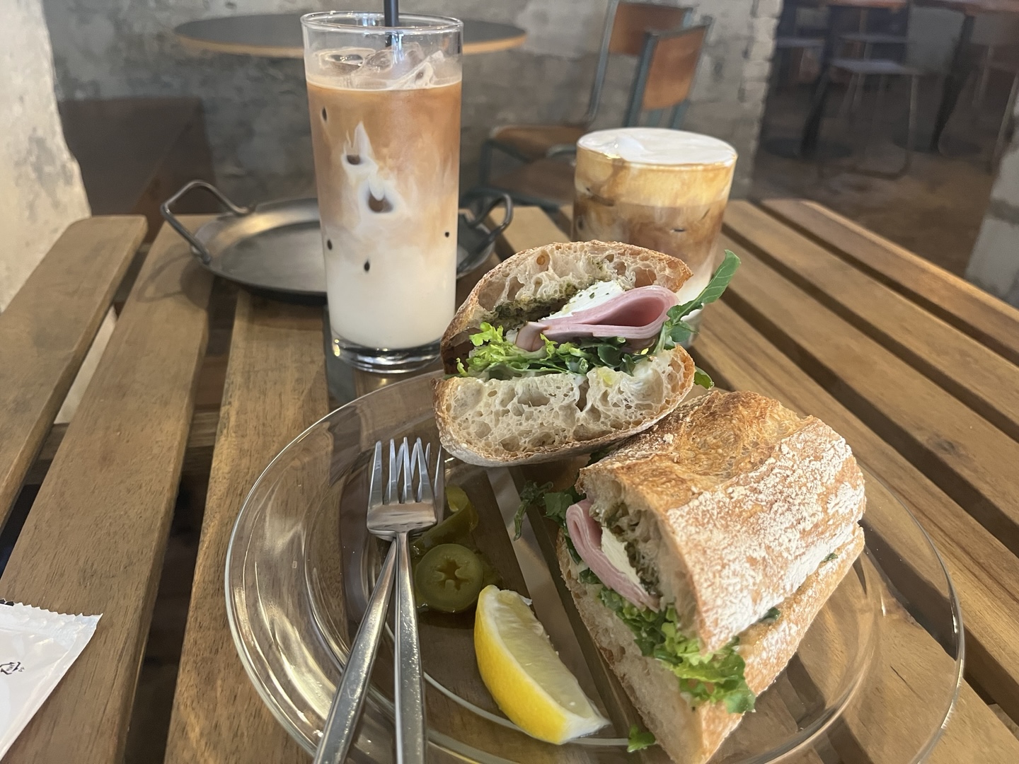 내가 주문했던 메뉴는 루꼴라 바게트와 아이스 라테