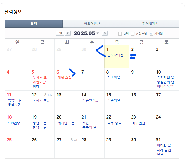 2025-05-06 (화) 어린이날, 부처님 오신 날 대체 공휴일